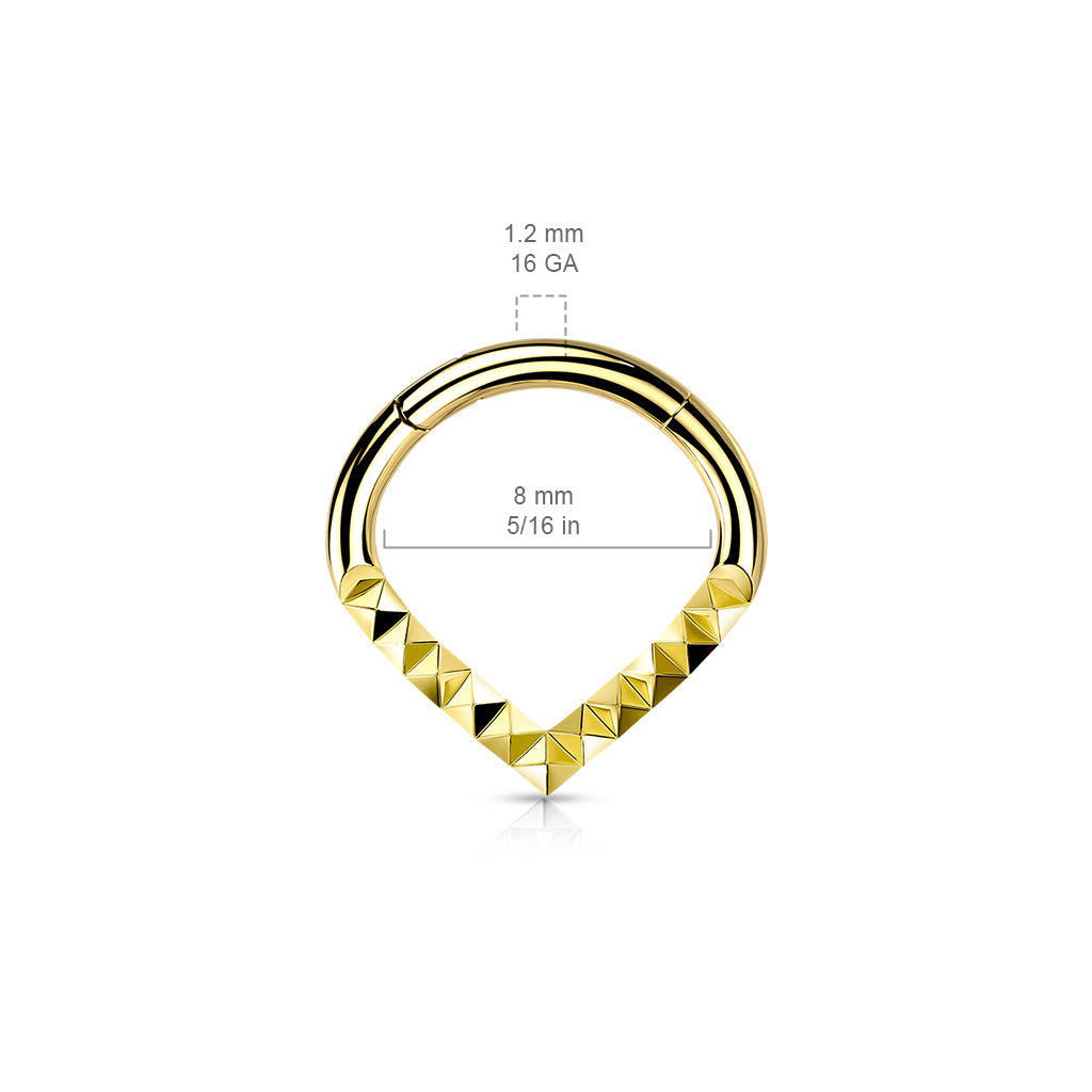 Hinged Segment Hoop Ring With Pyramid Cut Chevron