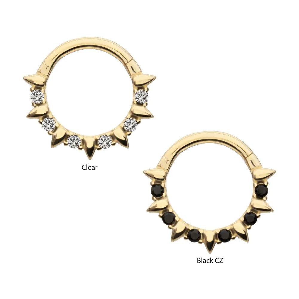 Invictus 14Kt Yellow Gold Alternating Spike & Prong Set Round Gem Front Facing Hinged Segment Clicker