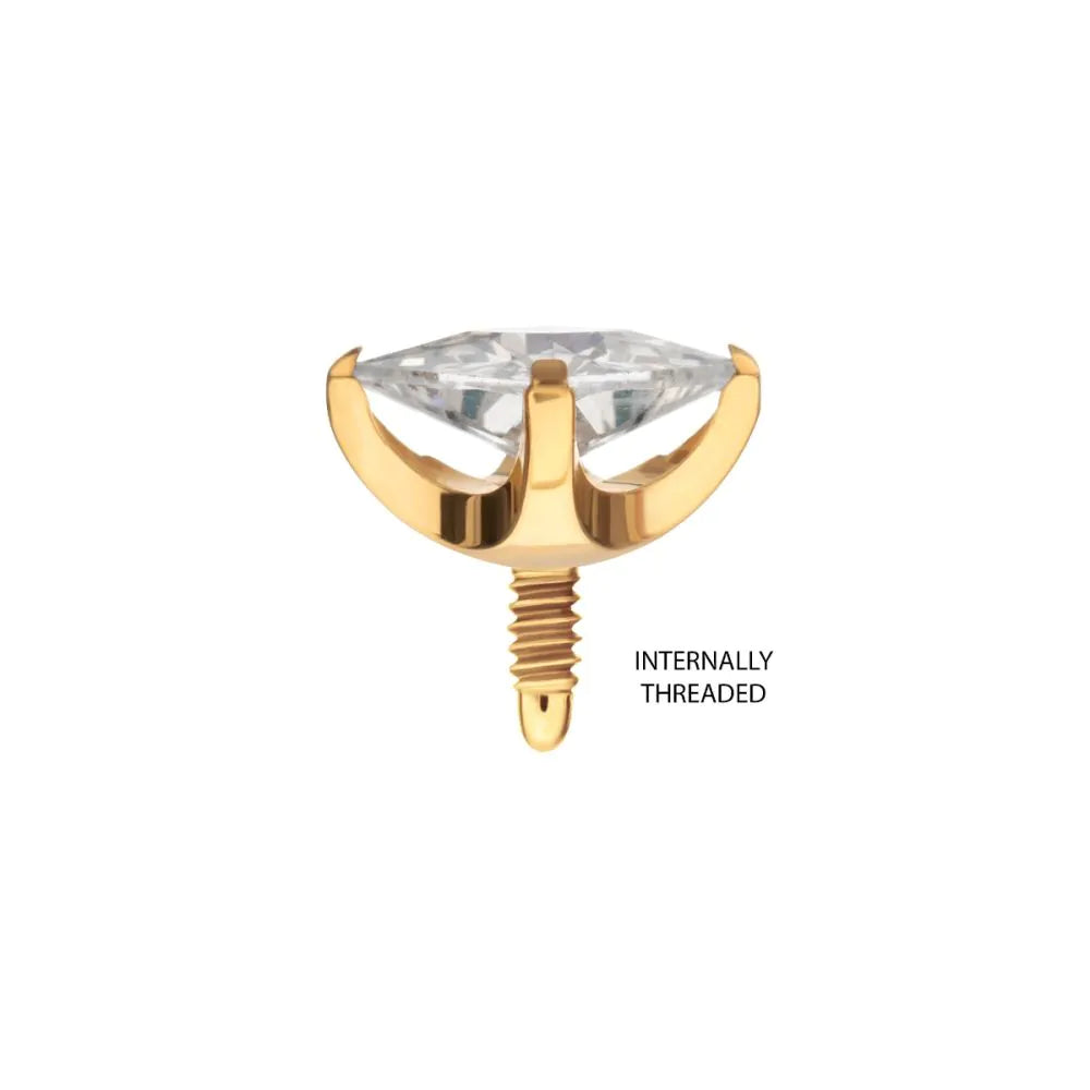 Invictus 24Kt Gold PVD Titanium Internally Threaded 4 Prong Princess Cut Gem Top