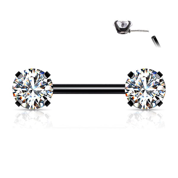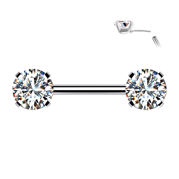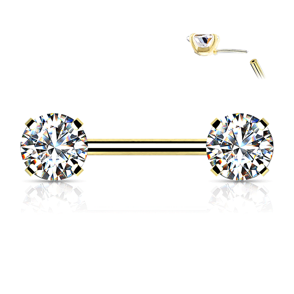 Threadless Round Gem Prong Set Plated Decorative Nipple Bar
